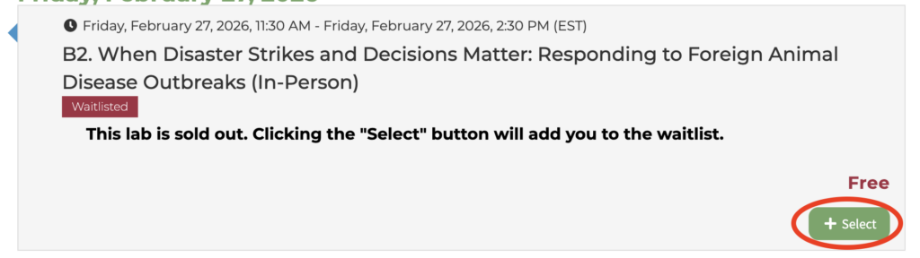 1/16/25 — B2. When Disaster Strikes and Decisions Matter: Responding to Foreign Animal Disease Outbreaks has sold out. Select the event during registration to be added to the waitlist.